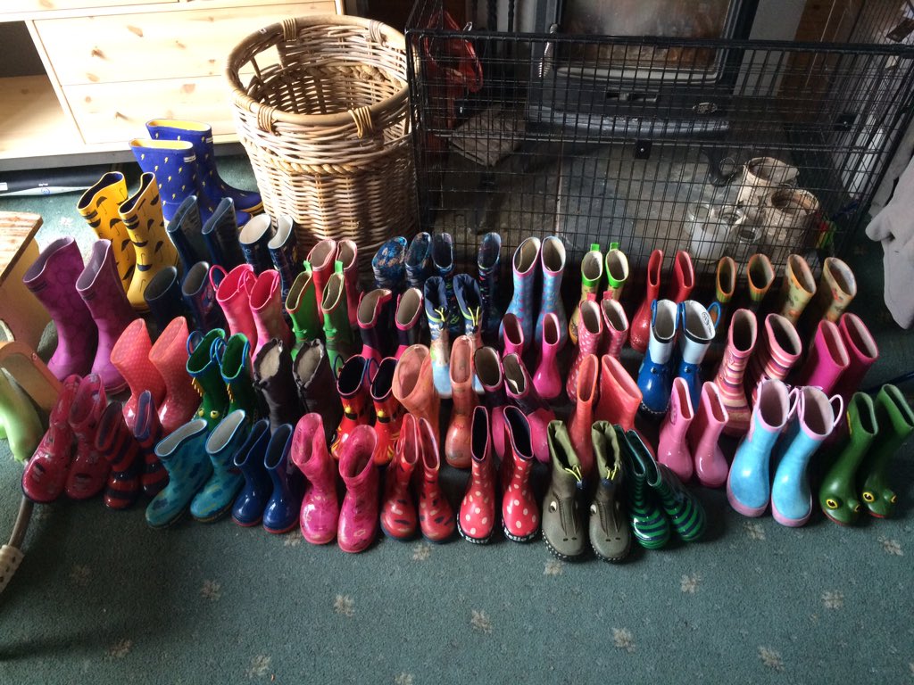 The idea for the welly library grew out of a conversation on mums net about having to buy 2 pairs of wellies for each child because of needing one pair for Forest School. It started with an idea about people sharing and has grown from there. Recently 2 or 3 companies have donated pairs of wellies which has been a great help. As the wellies are now taking over the house the storage shelves for the shed are a real necessity. Ideally the information should be sent out to children’s centres and then maybe local schools to allow more people to use the library, there are currently 100 members. Until a storage solution is set up there is a concern that increased supply and demand could not be met. Any pleas for further donations or purchasing more pairs of wellies can be made once storage is set up.